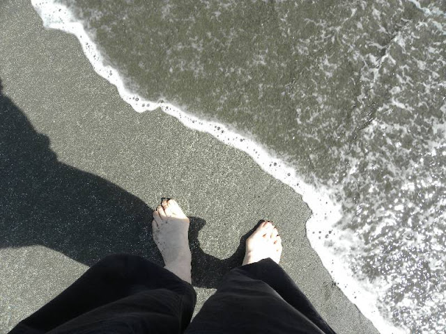 Then -- as we drove up the long driveway home, just of Hwy 1, we turned a corner and saw wispy fog drifting in, wafting all through the hills, just beautiful. My camera didn't capture the full beauty, but here's the best I could make happen.